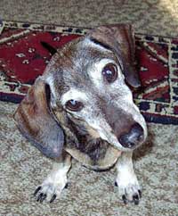 Bonnie ist 16 Jahre alt, hört und sieht nicht mehr sehr gut und zeigt Anzeichen von Demenz. Zudem muß sie bis zu 8 mal am Tag raus, da sie wohl jetzt auch noch unter Inkontinenz leidet. Sie kann Treppen nicht mehr laufen, muß also zumindest nach unten getragen werden. Herauf geht es noch einigermaßen. Man kann sie nicht mehr alleine lassen, denn sie ist teilweise wieder wie ein Welpe, nur daß ihr das Alter bei manchen Eskapaden einen Strich durch die Rechnung macht, und das könnte für sie gefährlich werden. Sie ist aber eine ganz liebe und treue Seele. Sie bekommt seit vielen Jahren schon ein Medikament für ihr Herz, und braucht bestimmtes Futter. Es gibt Tage, an denen man ihr das hohe Alter nicht anmerkt, dann hüpft und springt sie und ist voller Leben. Das Fibrosarkom an ihrem Oberschenkel scheint sie im Moment noch nicht zu stören. |