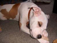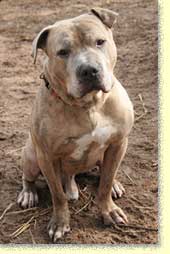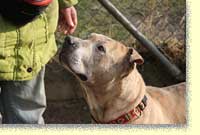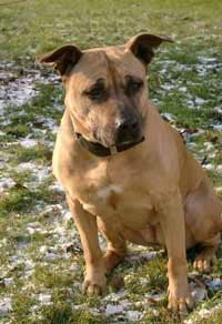 11jähriger Stafford-Terrier, ist ein lieber Kerl. Er genießt jede Streicheleinheit und freut sich über jeden Menschen, der auf ihn zugeht. Denny ist wohl verträglich mit Hündinnen und Rüden. Anscheinend ist er es aber nicht gewohnt, in einem Hund-Mensch-Team zu sein - er ist da etwas eigenbrötlerisch und würde z.B. beim